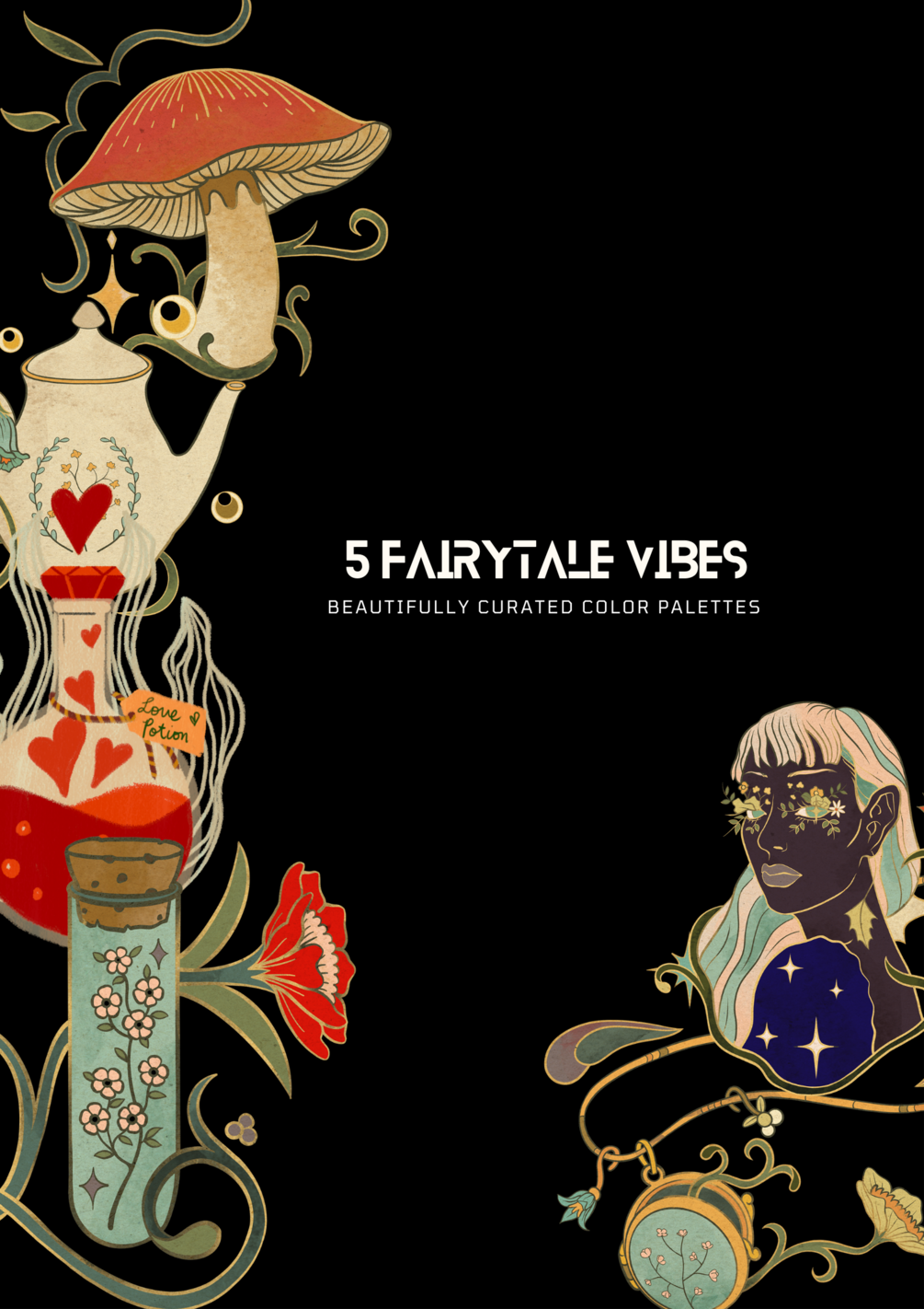 Inspired by the fairytales of yesteryears, this Fairytale Vibes swatch set will make your colors pop and set the tone for your next Procreate project.